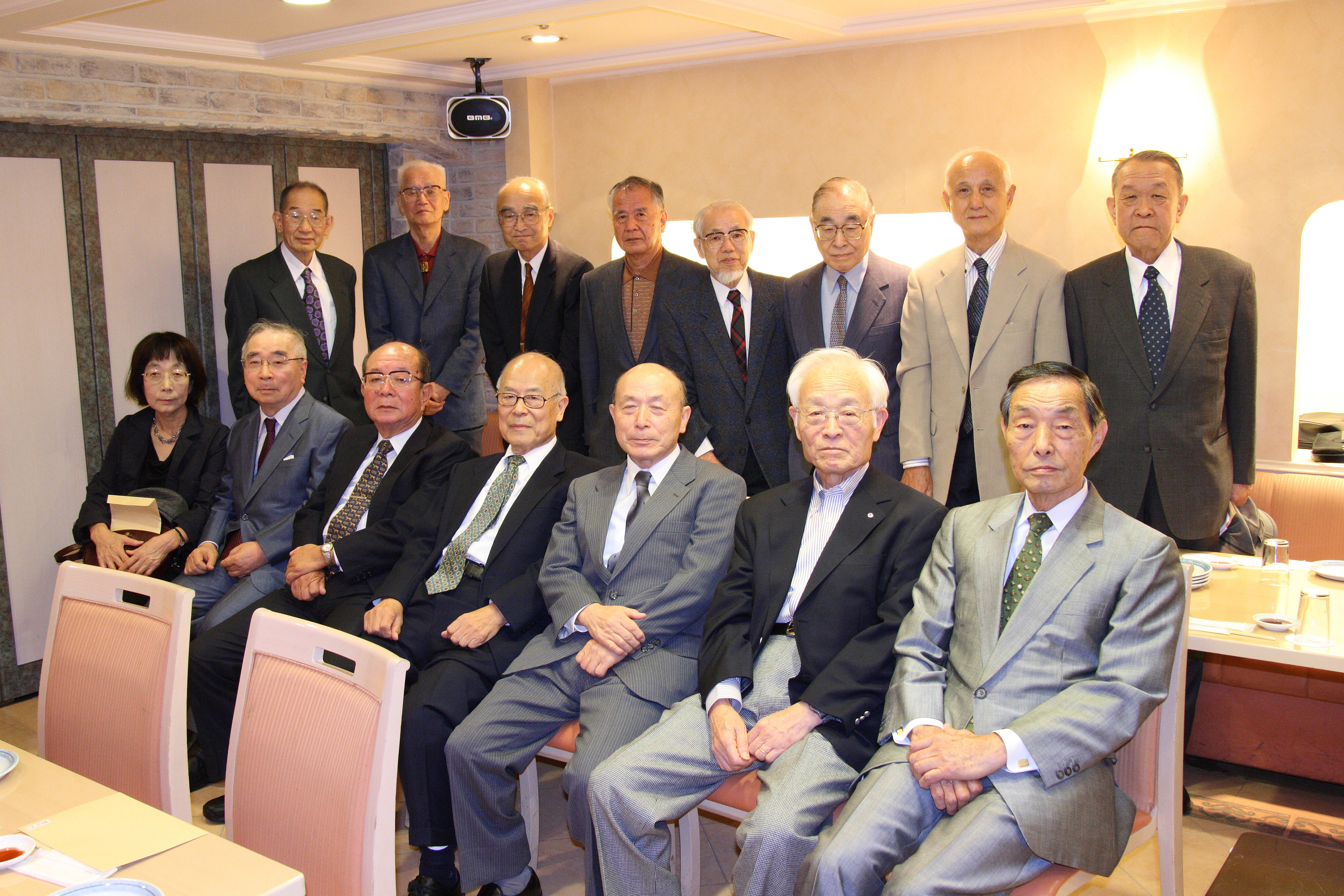 | 55年会まで間隔が空きすぎるため中間の非公式行事として52年会を企画し皆さんの意向確認をしたところ賛同が得られたので、2007年10月18日数寄屋橋の銀座クルーズクルーズで開催しました。 出席者は31人(守末夫人を含む)です。 非公式の集まりであるため先生方はお呼びしていません。 下の写真はその時の記念写真です。(写真をクリックすると大きくなります。) |