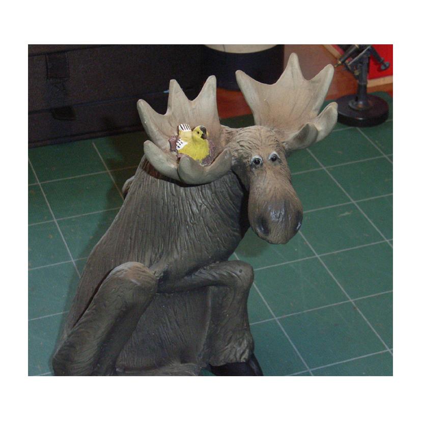 は秋、11月末ごろには落角。でも橇を曳くトナカイに角がなくてはかっこうがつきません。そこで神様はメスに角を与え、その落角は翌年1月ごろまでおあずけになっているのだとか。ということはサンタクロースの橇を挽くのはメスというわけ!その間オスは育児、洗濯でもしているのでしょうか。ところで角のある動物を諸兄はどのぐらい知っていますか?写真は私の机上に置かれたムース。カナダのお土産で角の上に鳥の巣があります。
