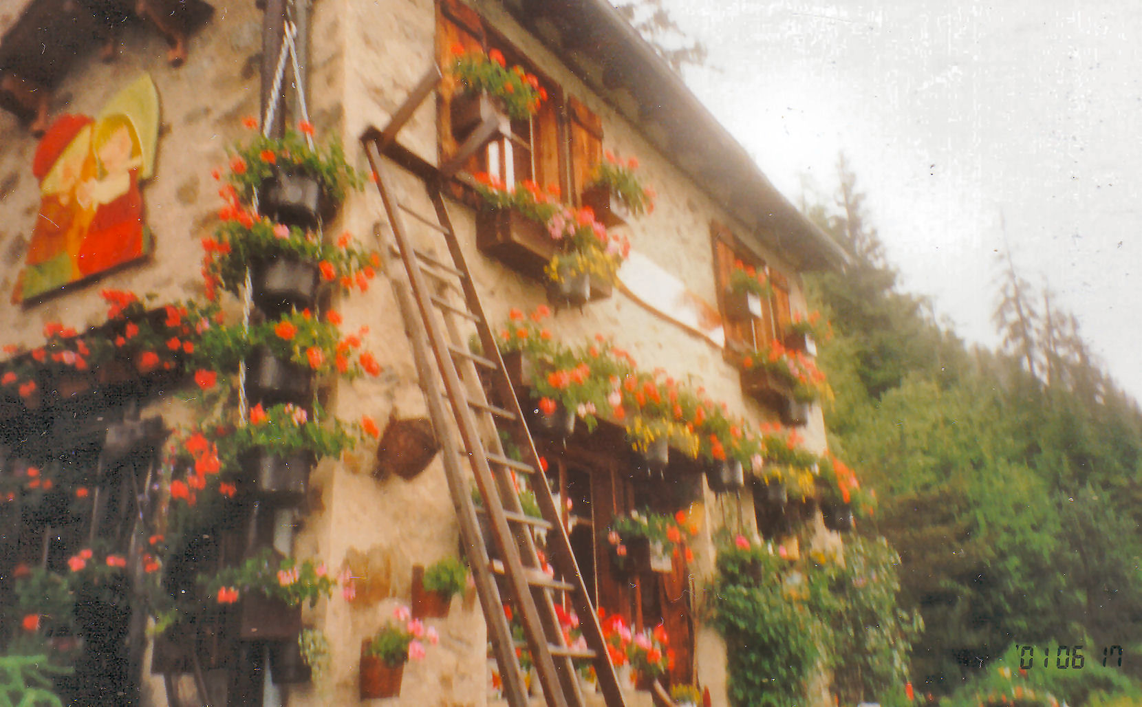 第2日(16日)モンブランを展望できるプランプラまでゴンドラで登ったが上は雨で暫く雨の中を歩いたが、直ぐ下山した。午後はシャモニーの町中を流れるアルブ川沿いに歩きレプラの町までを往復した。