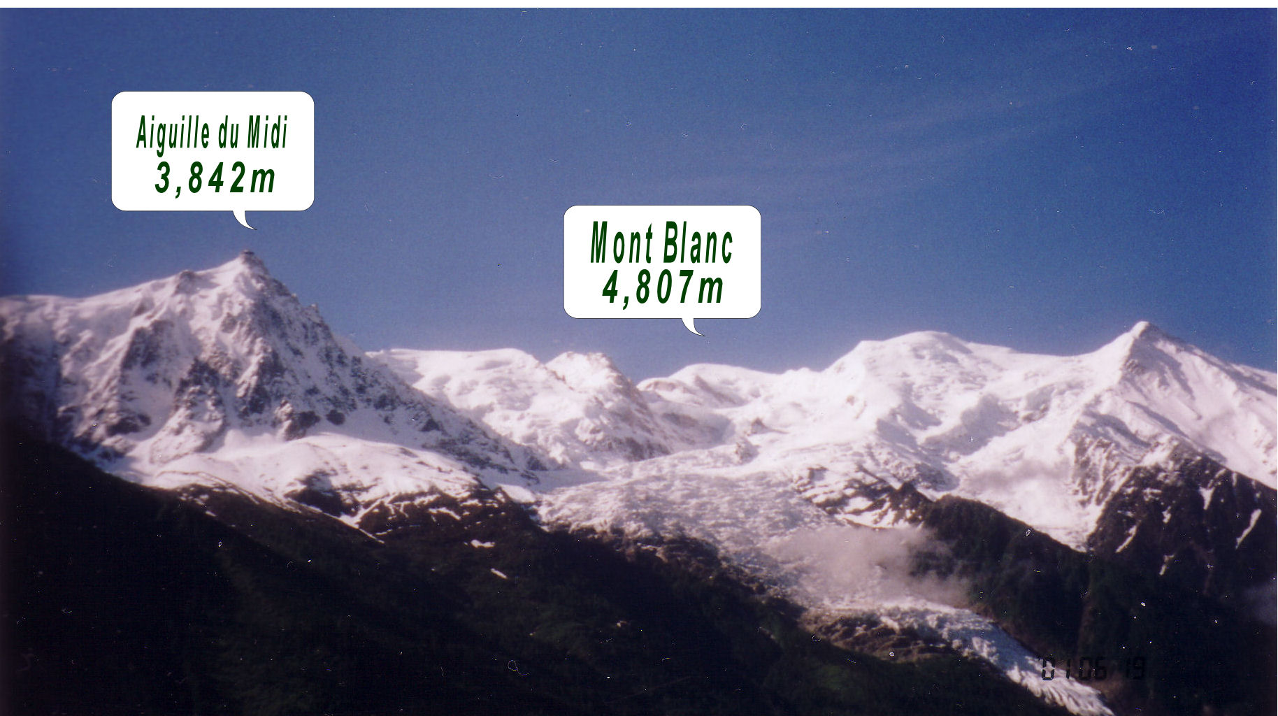 2001年6月14日から21日まで、機内泊を含めて7泊8日で「シャモニーの休日:7日間」(スイスエアーの個人旅行)に出かけた。もう忘れかけている所もあるが、記憶を辿って主だった所を紹介することにした。