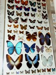 カブトムシと並んでどちらかといえば女の子に人気なのが蝶。カラスアゲハの標本を集めたコーナーと、世界中の各種の蝶、蛾を集めたコーナーがあります。日本の国蝶オオムラサキをはじめ、アマゾンの華麗な大型のモルフォ蝶は見ているだけで楽しくなります(写真)。