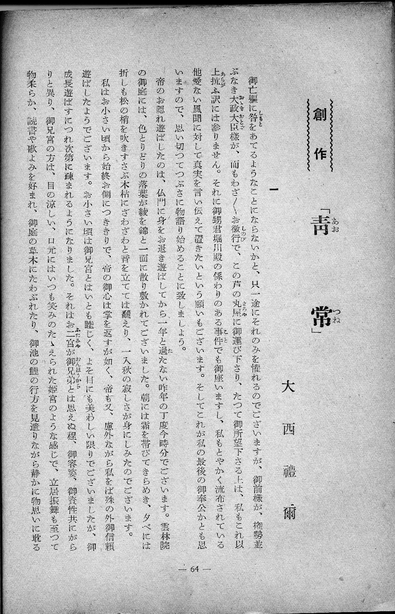| 大西君は、日本の伝統文化にも詳しく、上野の寄席鈴本演芸場にも連れて行ってくれた。大西君の文才は、東大工学部のT友会の雑誌「T友」復刊第二号(昭和28年11月28日発行)に掲載された、創作「青常」(平安朝時代の物語、ペンネーム:大西禮璽、64~77頁)を読むと理解できる。 | ![]() |