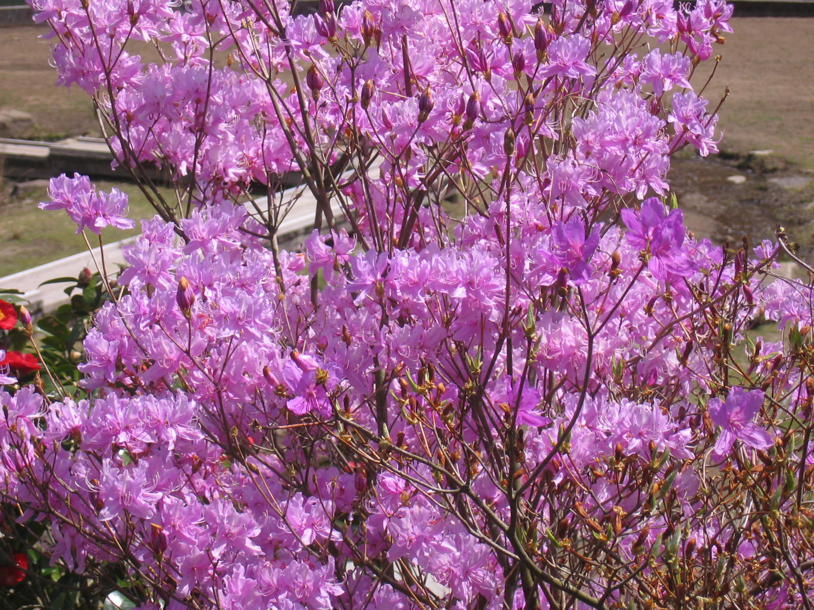 左:三つ葉つつじ(4月10日撮影、伊東市松川湖畔にて)