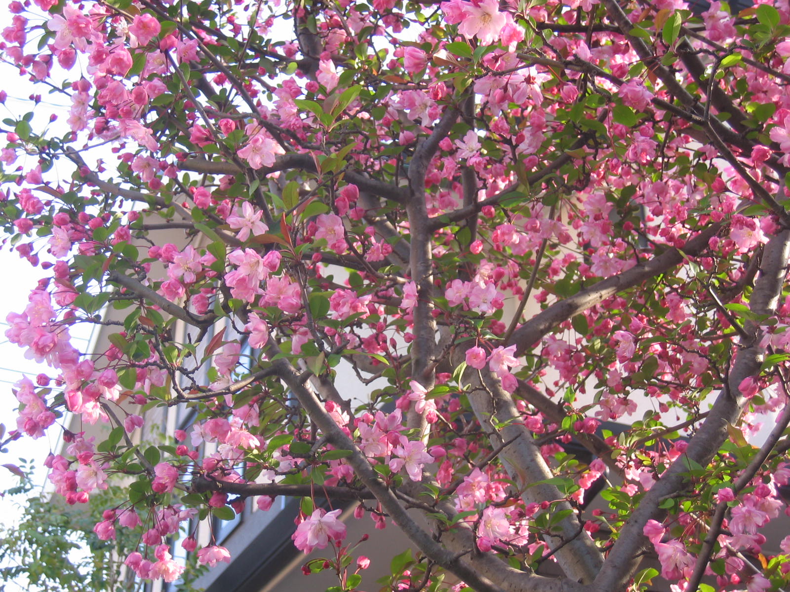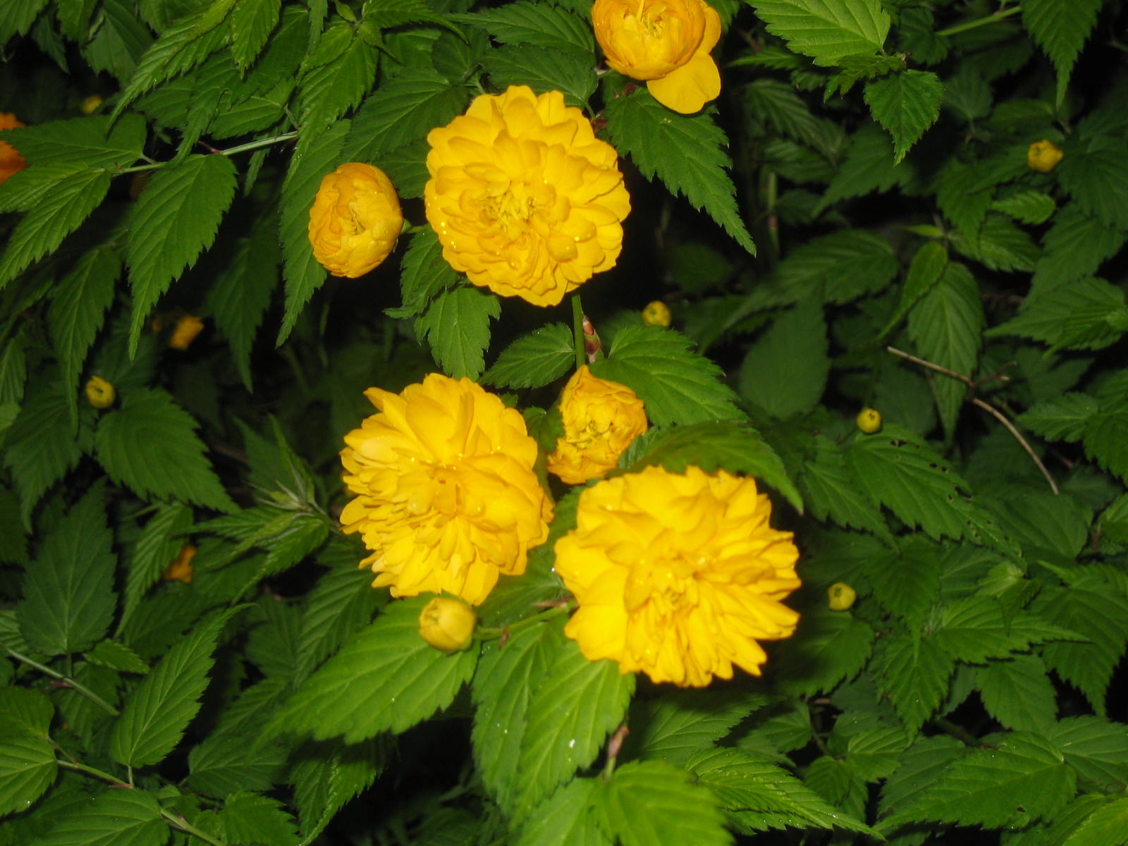 右:八重山吹(4月16日撮影、グリーンハイツ内にて)