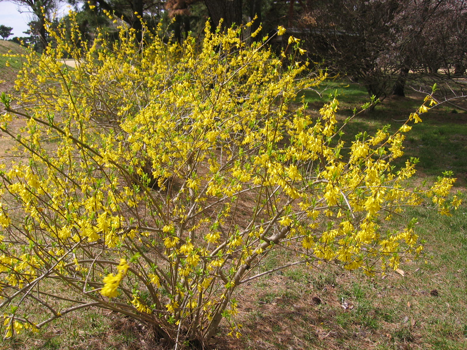 左:れんぎょう(4月1日撮影、鷹の台ゴルフ場内にて)