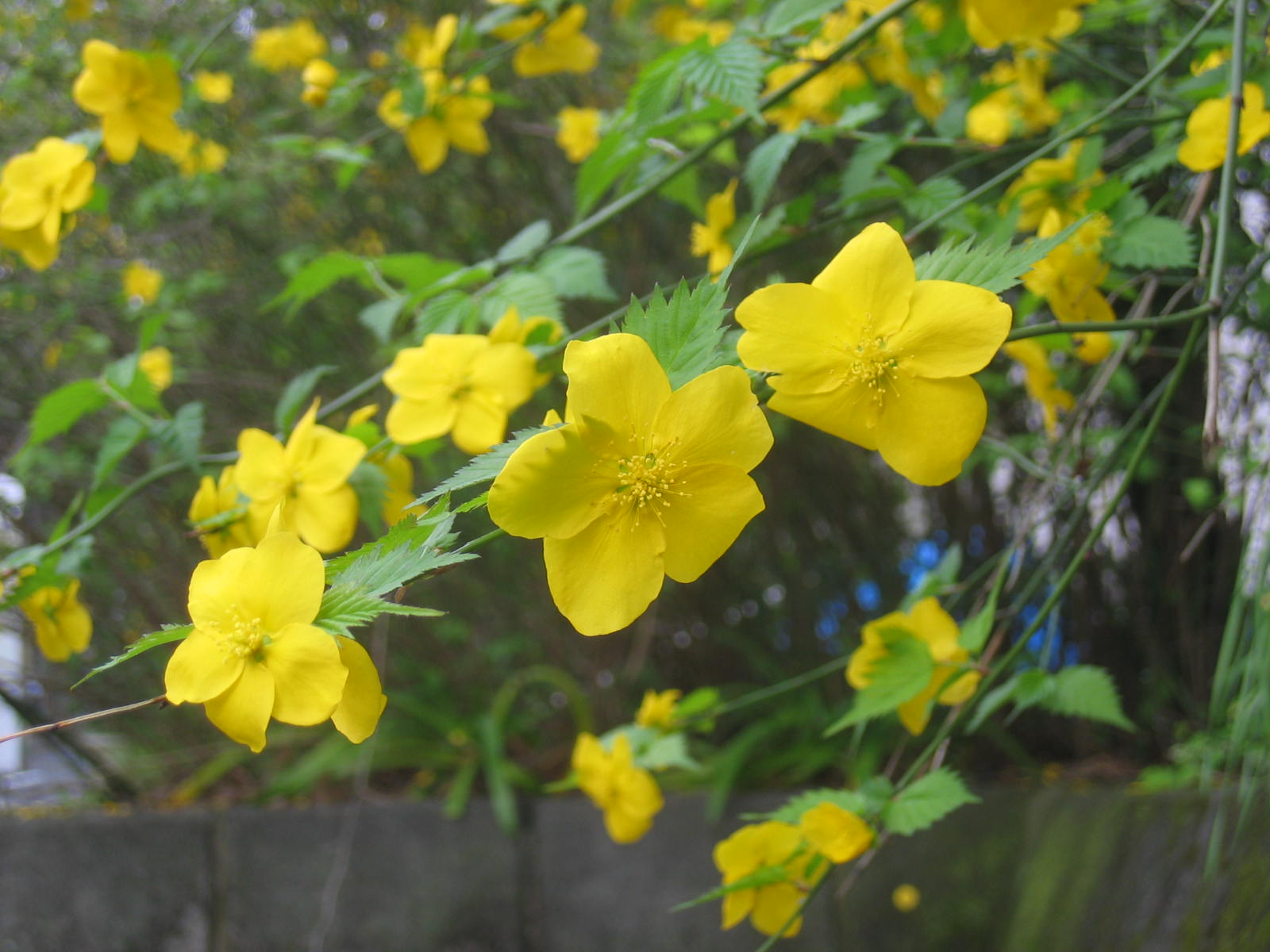 山吹には実がつくが八重山吹には実がつかないそうです。太田道灌が外出している時に突然にわか雨に遭い近くの農家で蓑を借りようと立ち寄った。出てきたのは娘で一輪の山吹の花を差し出した。この時に出した山吹は八重山吹だったそうです。後拾遺集に「七重八重花は咲けども山吹の実の一つだになきぞ悲しき」という歌があり、この娘は蓑(実の)一つも持ち合わせがないことを奥ゆかしく答えたのだそうです。太田道灌は山吹を受け取った時その意味が分らず、近臣の一人中村重頼に聞いて知ったという。古歌を知らなかったことを恥じて、それ以後太田道灌は歌道に励んだという逸話が残っています。