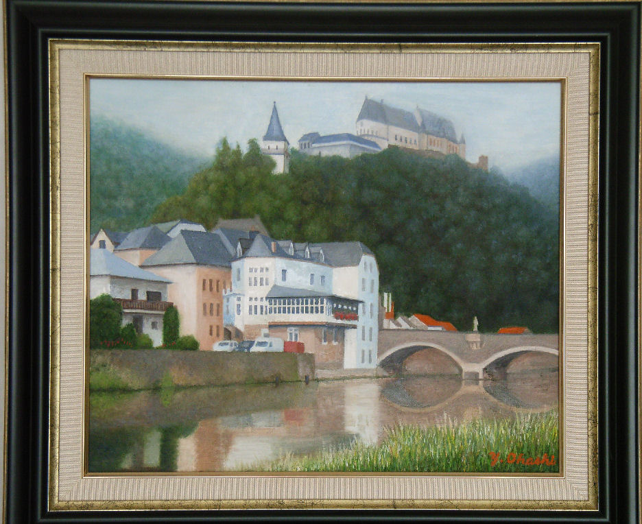 | しかし、ウール川から眺めるヴィアンデン城は素晴らしく、駆けずり回って写真を撮り、帰国後早速8号の油絵を描き、翌年1月に有楽町の交通会館で開催された「本明会展」に出展した。(油絵1) |
