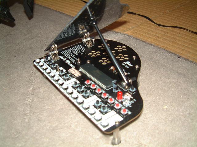 | (4)久方ぶりに電子部品組立工作をやっています。ロボットアーム、電子ピアノなど。半田付け不要のブレッドボードを使ったり、半田付けをしたり、生徒よりも私自身が楽しんでいます。インターネットで検索してメールで購入すると楽ですね。 | ![]() |
