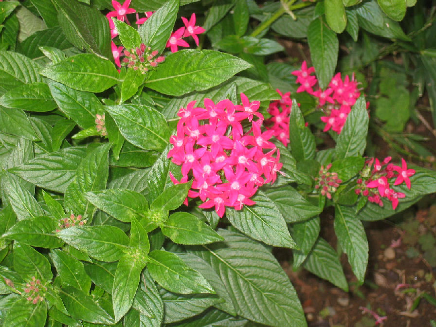 ペンタスはギリシャ語の「pente(5)」の意で、花びらが5弁の星形をしていることに因みます。英名は「Egyptian star cluster」(エジプトの星の群れ)という意で、とてもロマンチックな名前です。(花言葉=願い事・あざやかな行動・誠実・博愛心・希望は実現する) |