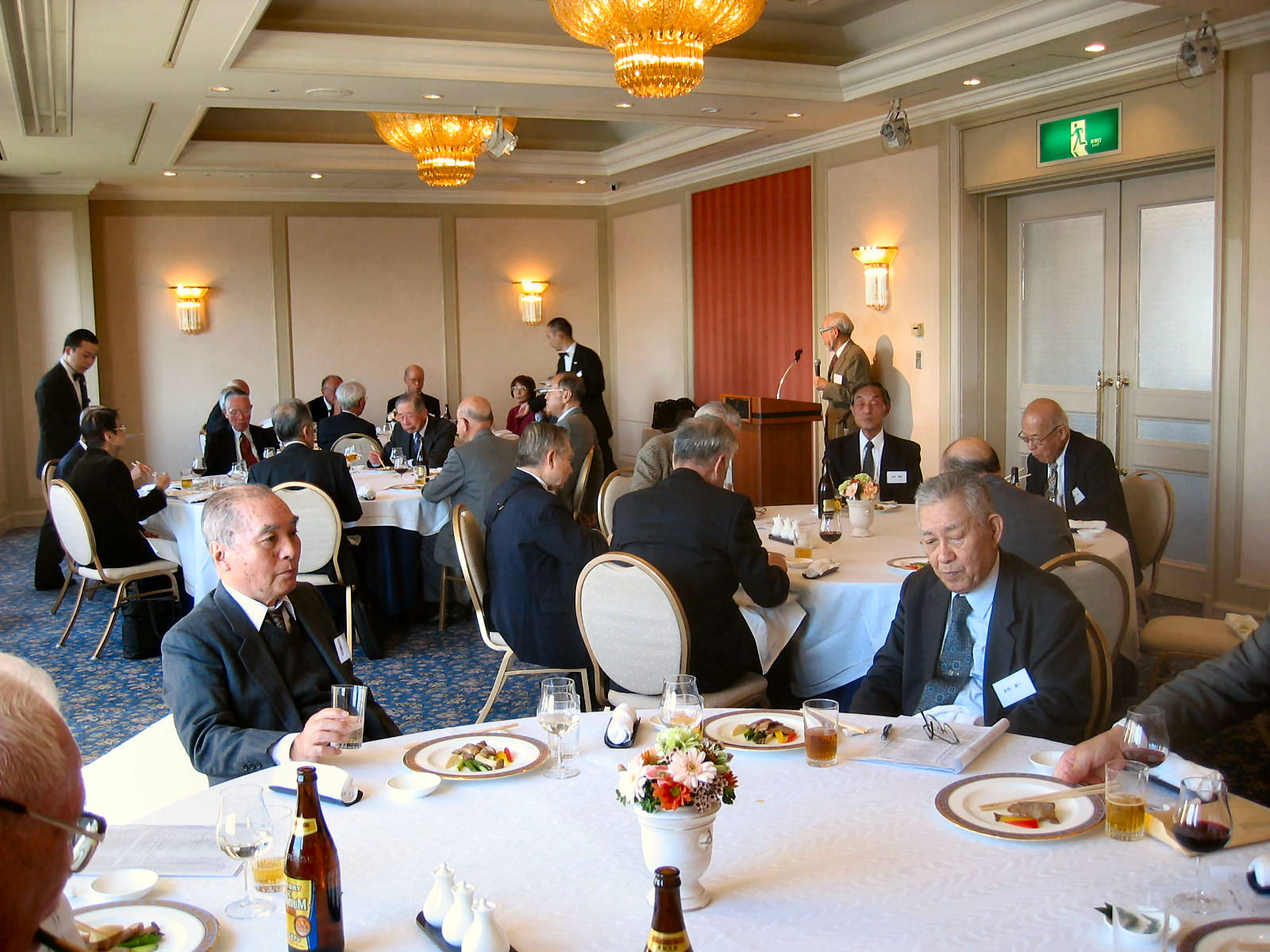 15分程の休憩時間に部屋の模様替えをして、第二部は立食形式で開始し、まず、大曲代表幹事から次期60年会幹事長の委嘱を受けてくれた武田兄が、チェルノブイリ後始末国際会議のため急遽ロンドン出張となった(11/7~11)との報告があり、中林兄から幹事長代行の挨拶がありました。