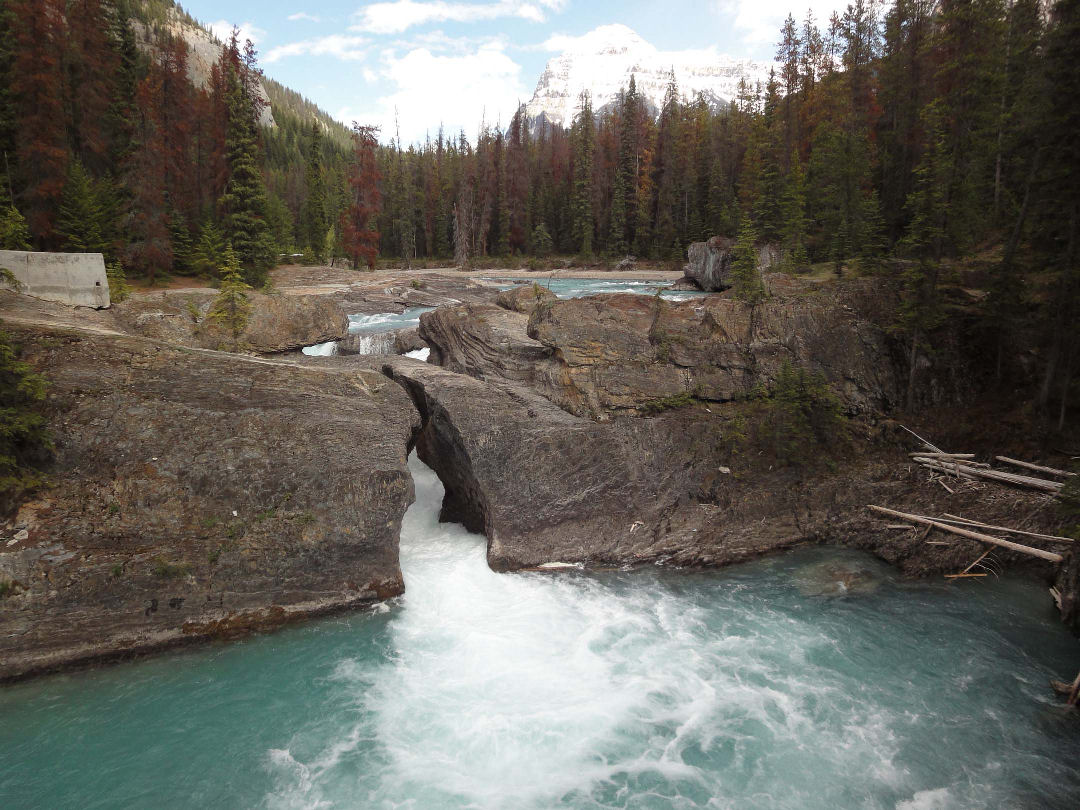 エメラルド湖の後、ナチュラル・ブリッジ(写真3)や、スパイラル・トンネルを見て、ルイーズ湖村のロッジで降ろしてもらい、Kさんと別れた。 |