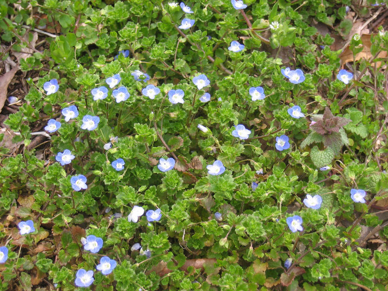 ●オオイヌノフグリ:(4月2日撮影、横浜市緑区内の三保市民の森の広場で) 花言葉=「誠実・清浄」