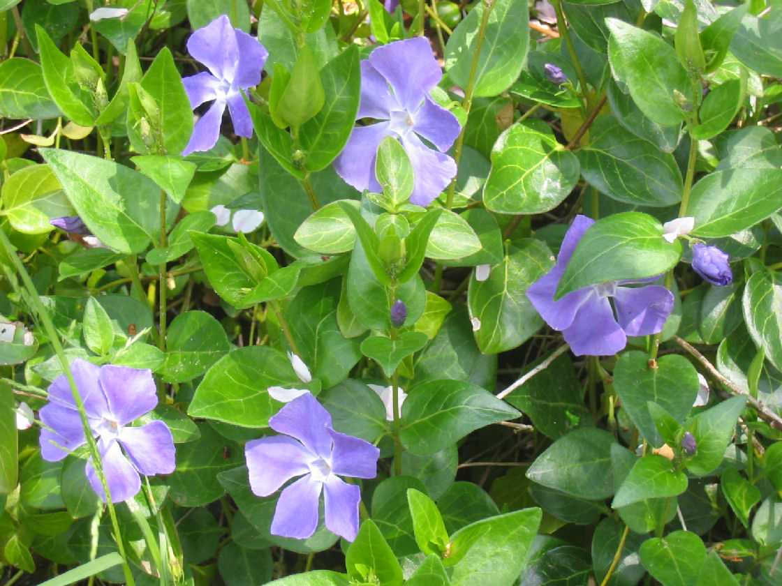 ●ツルニチニチソウ(4月20日撮影、津久井湖畔にて) 花言葉=「幼なじみ・朋友・生涯の友情・優しい思い出等」