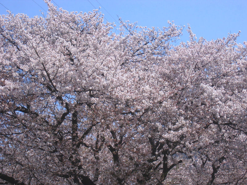 今年のグリーンハイツの桜の開花は、靖国神社の桜より1日早く3月27日が開花でしたが、その後のお天気の状況で長続きしました。中央公園で毎週月~金の午前10時から約30分間朝の体操をしていますが、その会で13日に体操の後、お茶とお菓子で(100円会費)花見会を実施しました。やはり満開の桜はみごとです。 |