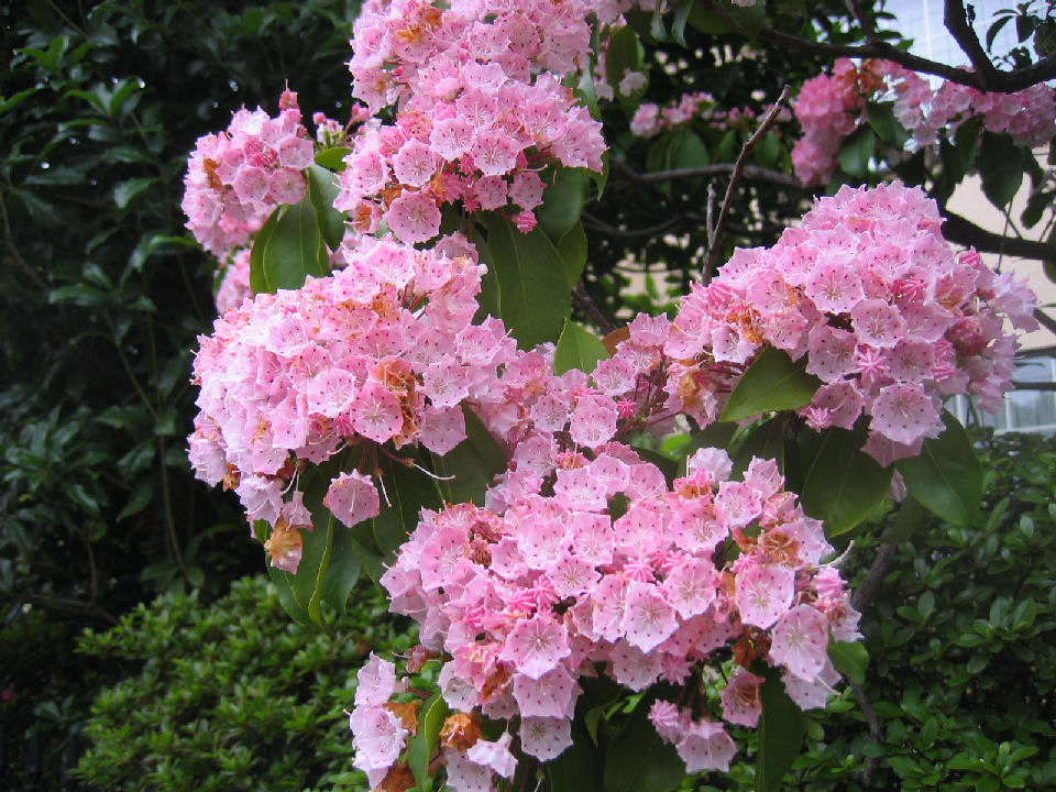 ●カルミア:(6月1日撮影、川崎市宮前区内の民家の庭先で) 花言葉=「さわやかな笑顔・大きな希望・大志を抱く、野心等」
