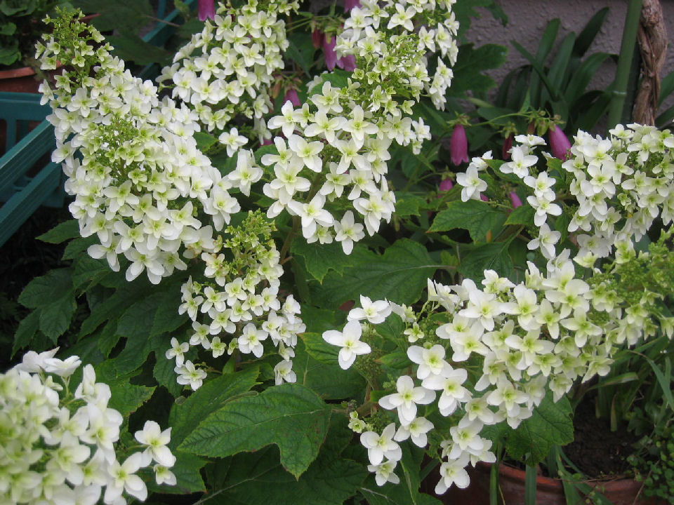 ●カシワバアジサイ:(6月1日撮影、川崎市宮前区内の民家の庭先で) 花言葉=「慈愛・純潔・純粋・汚れなき心・清純・美・皆を引き付ける魅力・元気な女性等」