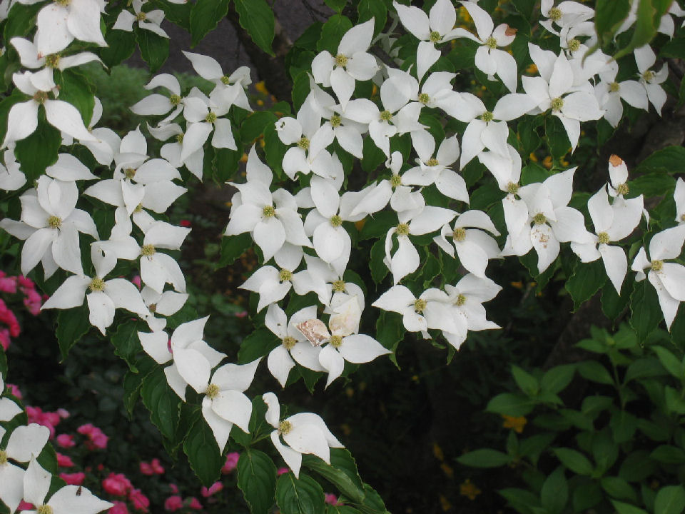 ●ヤマボウシ:(6月9日撮影、熱海市アカオハーブ&ローズガーデン内にて) 花言葉=「友情等」 中国名は「四照花」という。枝いっぱいに咲いた時の四方を照らす様子を表現している。