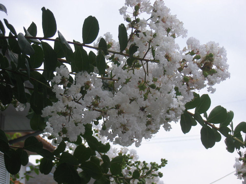 既に一昨年および昨年とさるすべり(百日紅)は取り上げ済みですが、いずれも赤だけでした。自宅付近を5~6分歩くだけで赤・ピンク・白のすべてに遭遇できます。暑い時期にふさわしい花にも思えます。百日紅は中国名で長期に亘って花が咲き続けることから名付けられました。原産地は中国だそうです。 |