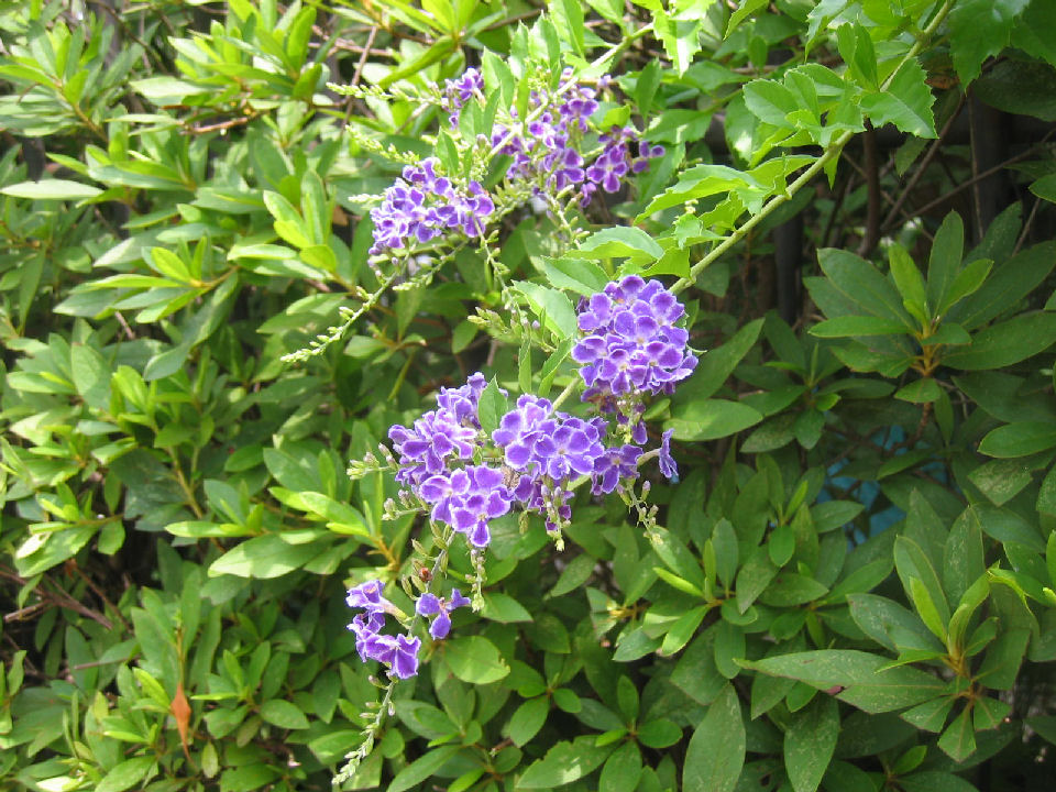 ●デュランタ(8月2日撮影、宮前区内を散歩中に) 花言葉=「あなたを見守る・歓迎・独りよがり・目を引く容姿」