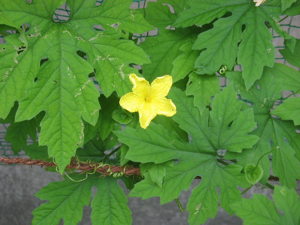 今回はゴーヤの花が紹介されたのでコメントします。我が家はマンションの二階ですが、ベランダのプランターにゴーヤを植えて、緑のカーテンにしています。外から眺めてみると、三階、七階にもっと立派な緑のカーテンがありました。6月に海外旅行した時は、ポリタンクに水を入れ、サイフォンの原理で給水していたので、帰国後無事でした。少し小さいですが、実は食卓にのぼりました。