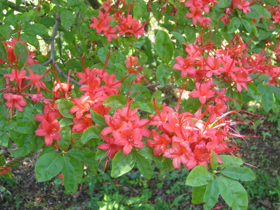 夏に咲くつつじがあるんだと、写真を撮りました。アメリカ南東部ジョージア州南西部とアラバマ州南東部に分布しており、河川沿いの森に被われた、あるいは砂地の峡谷に生えているそうです。 |