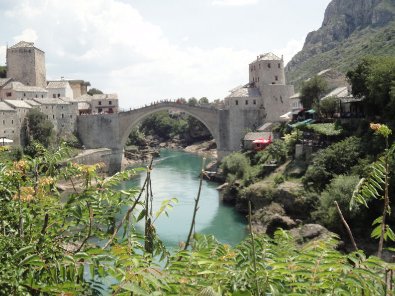 この石橋は、 NHKのテレビでも紹介されたように、1993年の内戦で爆破され、最近漸く再建された。川の両岸の住民が仲良く石橋からの飛び込み試合を復活したそうだ。