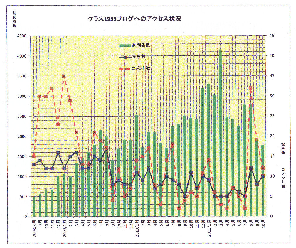 クラス1955ブログへのご協力有難うございます。10月末までのアクセス状況のグラフを添付しましたので、ご覧になって下さい。