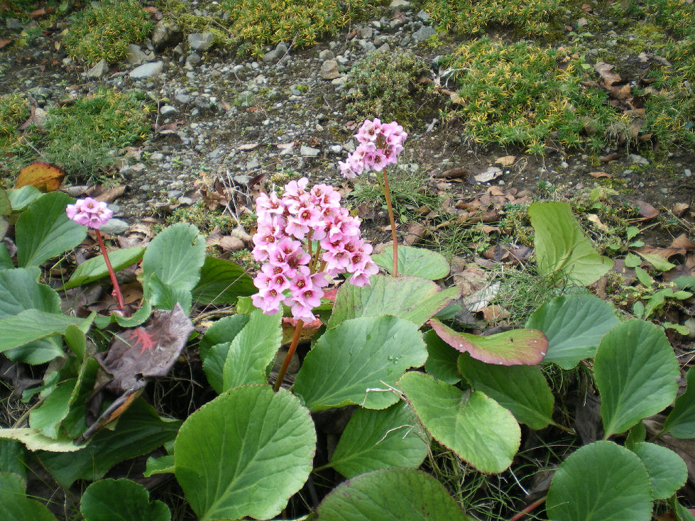 名前が示すように、原産地はアフガニスタン・チベット・ヒマラヤ地方の東アジア一帯で、寒さに強いそうです。日本へは明治時代はじめに渡来したそうです。別名「ベルゲニア」はドイツの植物学者(ベルゲン)の名に因んでいます。