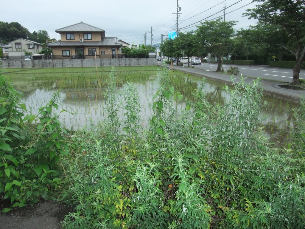 | そんな遠い所までは行けないので、先ず手始めに静岡の実家の近くを夜自転車で回ってみました。そしたら小高い山裾にまだ辛うじて残っている田んぼの畦のヨモギの草叢(写真)にそれらしき声が聞こえてきました。録音をとって「鳴く虫の会」の幹事さんに確かめてもらったらキンヒバリに間違いないとのこと、意外にあっさりめぐり合えました(2つ目の添付録音) | ![]() |