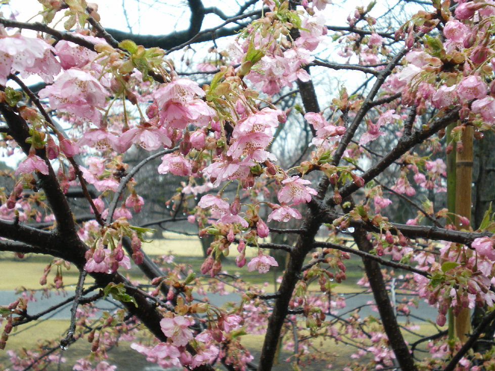 3月24日、新宿へ出る用事があったので、一寸足を延ばして新宿御苑へ行きました。ここでも遅い春を象徴するかのようにまだ河津桜や寒桜が咲いていました。このブログで過去に河津桜は(2/21、2/7、2/24)に撮影した写真を紹介しています。また寒桜の一種である熱海桜は(2/5、1/6、2/10)に撮影した写真を紹介しています。今年の春到来が遅いことを花は的確に知らせています。でも、今年の春ももうそこまで来ているのを体感出来そうですね。