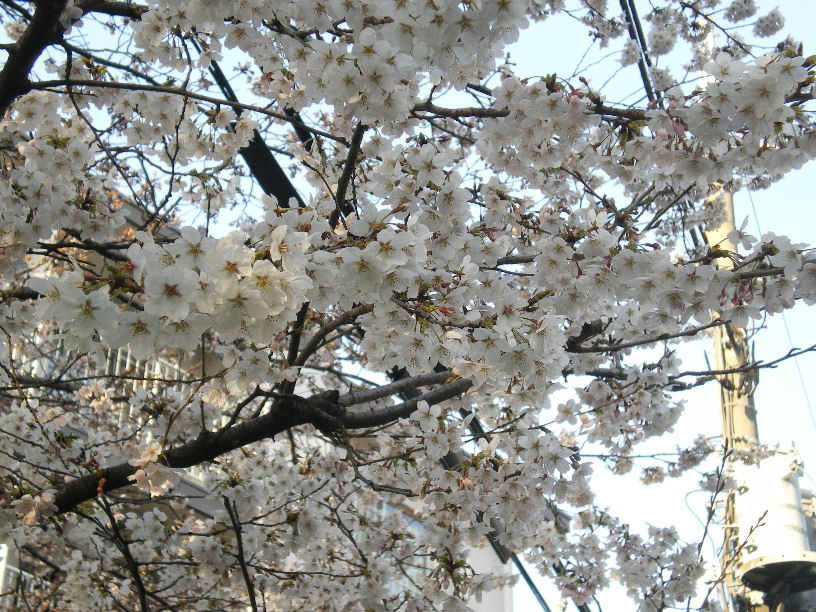 この写真の桜の開花日は、一昨年は3月21日・昨年は3月27日・今年は4月1日でした。宮崎台駅前通りの桜祭りは4月1日で、蕾の花見でした。それでも、この写真のように4月5日にはほぼ満開の状態になりました。このブログの3月11日号で沢辺兄からワシントン・ポトマックの桜についての紹介がありましたが、やはり桜(染井吉野)は良いものですね。