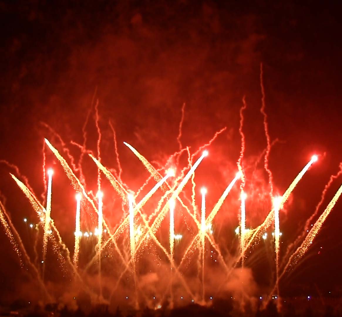 オリンピックの開会式や閉会式は,コンピュータ制御の花火が多用され,演出が派手になってきていますが,ローカルの花火でもその傾向がみられます。また新種花火も登場しており,小規模ながらそれなりに楽しむことができます。音楽に連動させた花火もありましたが,メイン会場からは800mと離れており全く聞こえませんので,花火のみの撮影となりました。音楽に連動させることは編集段階でもできますので,今回は部分的ですが,大玉13発の打ち上げをBGMと連動させてみました。