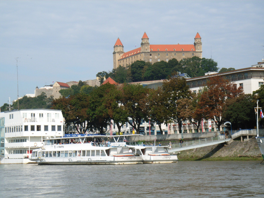 8月19日の早朝、スロヴァキアの首都ブラチスラヴァのホテルを出発して港に向った。路面電車に沿って行く予定であったが、途中で近道があるのを発見したのが不運であった。当地の道は知らぬ間に曲がっており、方向が判らなくなり中々港に到着しない。とにかく路面電車が通る道を探し出し、家内と二人ホウホウの態で港に到着した。幸いドナウ川が著しく増水していたため、出国手続きの開始が遅れていて救われた。