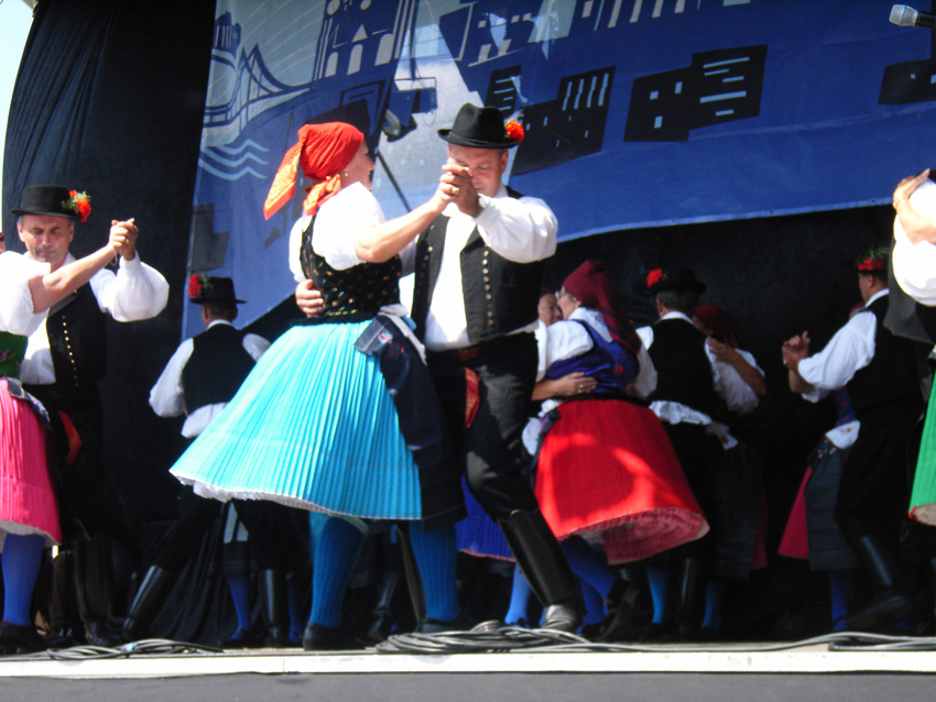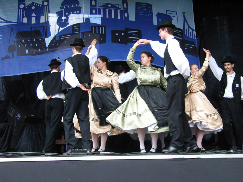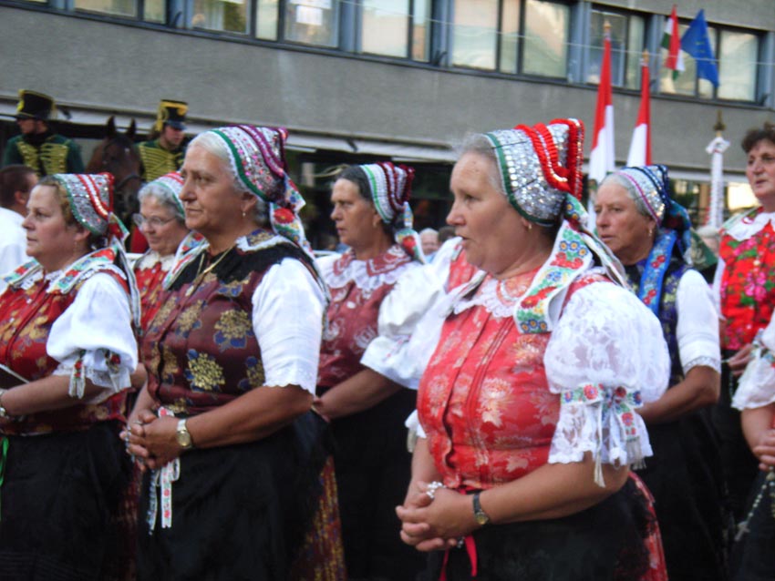8月20日午前中は、観光バスで、写真3 に示す王宮や、漁夫の砦を見物し、ゲッレールトの丘から市内を展望した。ドナウ川辺のホテルに帰って驚いた。ドナウ河畔は急変貌して、多くの屋台や舞台が現れ、身動きできない程の人波で埋まっていた。早速、民族舞踊の舞台に釘付けになり、多くの珍しい写真を撮影した。