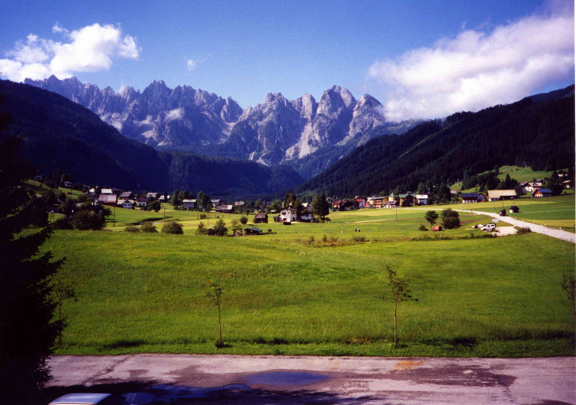 2000年7月5日に、大曲兄や小林兄がブログで紹介されたハルシュタットを出発して、バスでゴーザウ村の宿に宿泊した。そこからの眺めは実にゆったりとしていた。(写真1)夕食では当地自慢の野菜スープがあっさりとして美味しく今でも思い出す。こんな山中で魚料理が出て驚いたが、近くの湖や川で釣れるらしい。