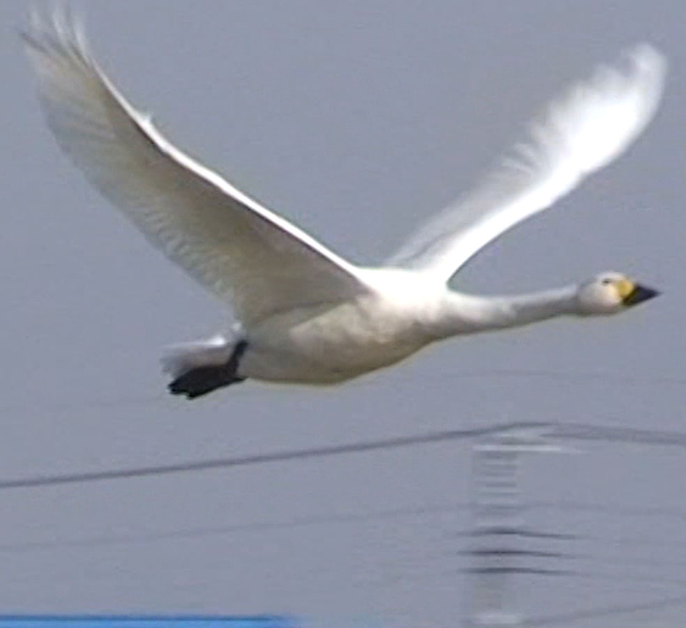 | 上記の「本埜に集う白鳥」とは別に,「泥だらけの白鳥」での着水,「メタボな白鳥」での離水,それに飛行を抜き出して編集した約1分半の短編「白鳥の着水,離水,飛行」も同時に制作してみました。 | ![]() |