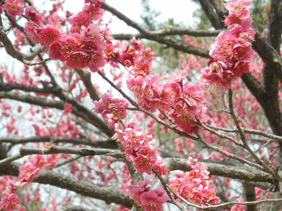 ●紅梅(紅千鳥:べにちどり):(以下4点は全て、2月22日撮影、大倉山公園梅林内にて)
