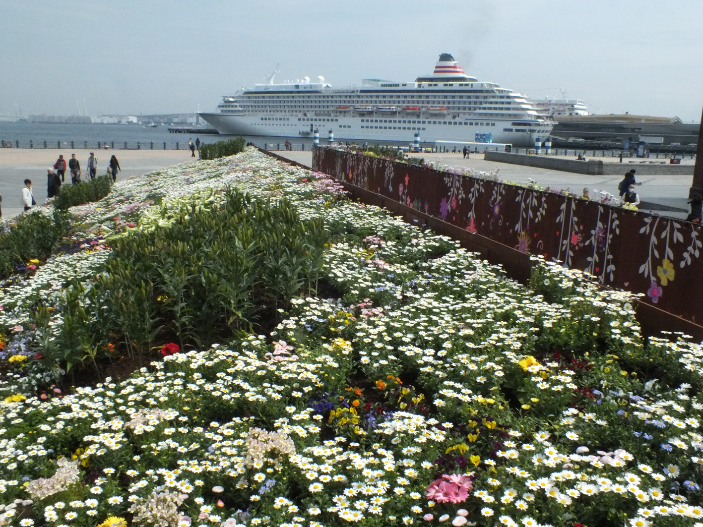 ちょうど大桟橋に飛鳥Ⅱが停泊していて、存在感のある脇役となってくれた(写真5)。