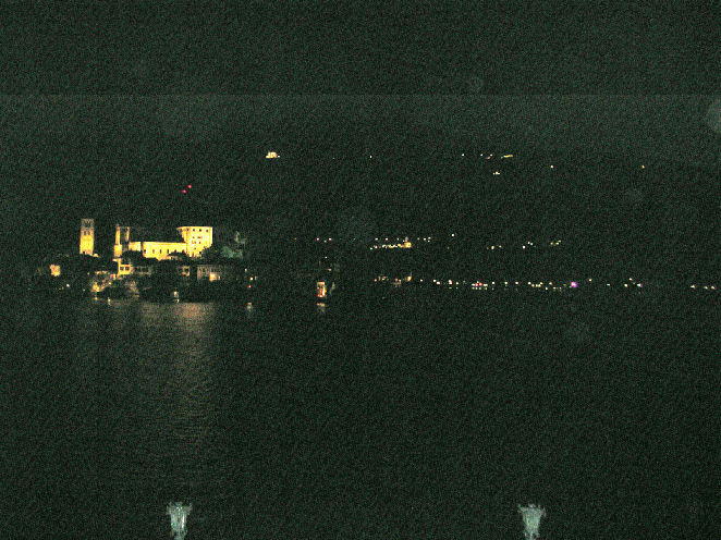 | 会話が盛り上がっている内に、オルタ湖に到着し、(写真1)に示す美しい湖に浮かぶサン・ジュリオ島を眺めながら、各自のホテルに向かった。ファックスで予約はしてあったが、ホテルではパスポートを預けるように言われた。このホテルには、近隣の各国から年配の常連客が長期で泊まるらしく、一見の客は家内と私の二人だけであった。ホテルからは、(写真2)に示すように、サン・ジュリオ島が良く見える。早速、荷物を置いて連絡船でサン・ジュリオ島に向った。 | ||