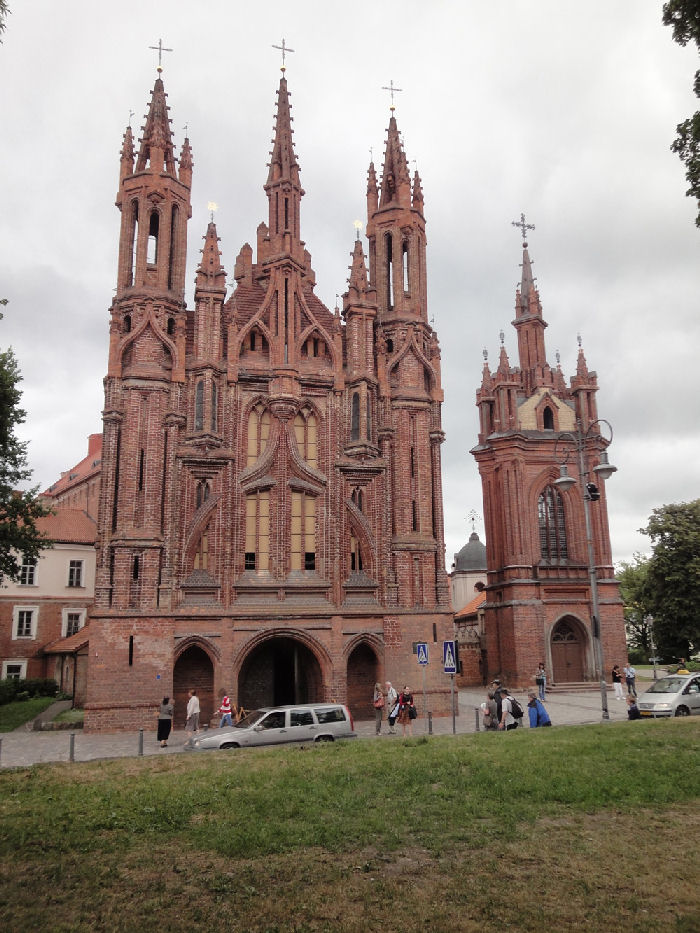 博物館には1989年8月23日に約200万人が参加した「人間の鎖」(バルトの道)の写真が展示してあり、改めて独立への苦難の日々が偲ばれた。続いて大聖堂(写真6)を見学した。正面にある聖カジミエルの聖画には手が3つある。3つ目の手は、画家が何度消しても再び現れてきて、止む無く残されたと言われている。最後に、聖アンナ教会(写真7)を訪れたが、33種類の異なる形の煉瓦を使った火焔式ゴシック建築の傑作である。1812年にナポレオンがロシア遠征の途中、入城した時にフランスに持ち帰りたいと言ったそうだ。