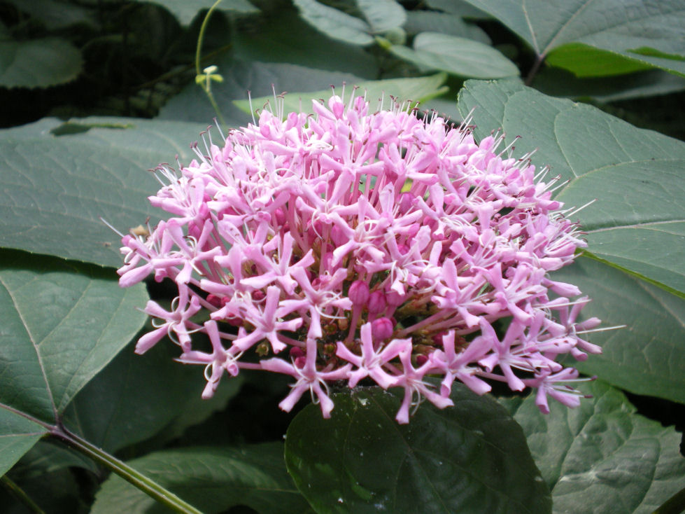 花言葉=「輝く美しさ」は、大の字形に開いた淡い紅色の小さい花が沢山集まった手まりのような花のつややかな美しさ故に、つけられた。