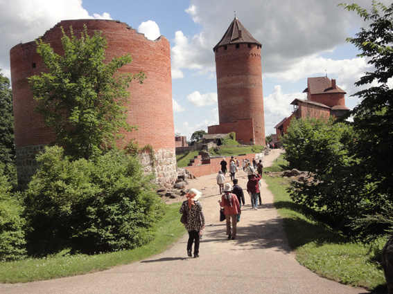 7月1日午前は、朝寝坊をしてゆっくり市内観光をしたが、参加者の落胆は顔に現れ、添乗員に気の毒であった。一昨年クロアチアのツアーでも同じ添乗員で、宗教歴史に詳しい方であった。午後は、バスに一時間乗り、ラトヴィアのスイスと言われるスィグルダに到着。赤レンガが美しいトゥライダ城を見学した。(写真10 )元気を出して、本丸の頂上に登り、四方のパノラマを楽しんだ。夕方リガに帰ると、民族衣装の少女達の姿があちこちで見られた。「歌と踊りの祭典」は市内の各所で一週間行われるそうである。