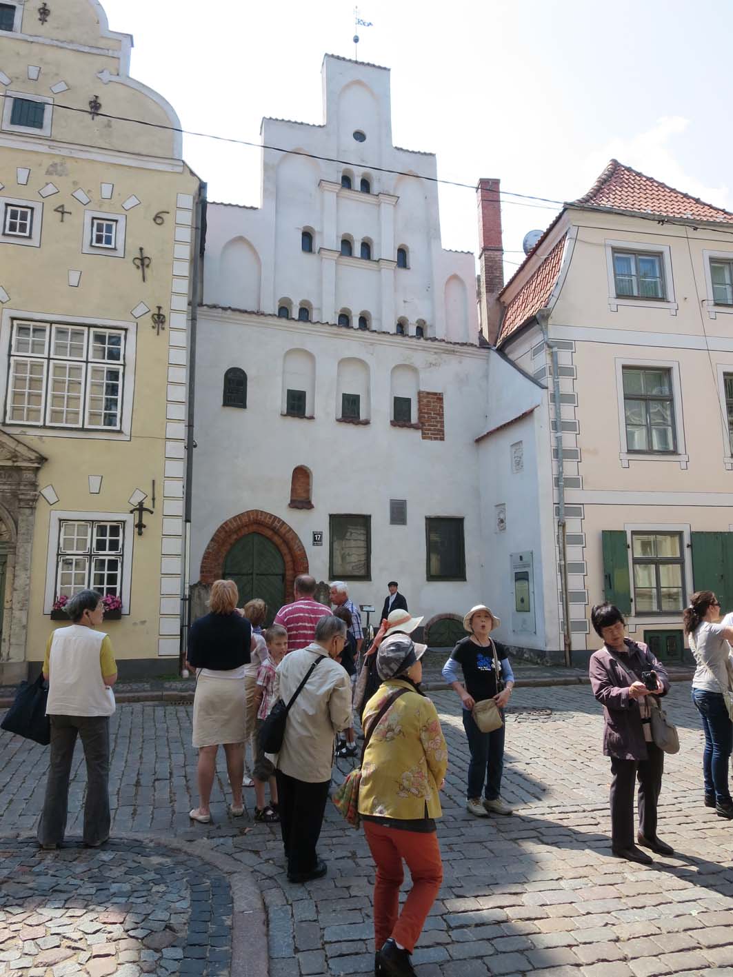 6月30日午前は、リガの市内観光をした。先ず大聖堂(写真4 )を訪れ、順次三人兄弟(写真5 )、スウェーデン門(写真6)、火薬塔(写真7)、猫の家、ブラックヘッドのギルド(写真8)、を見物した。最後の広場に到着した時、本日の悲劇の前兆が訪れた。ツアーメンバーで最年少40才代の女性が、バッグから現金とカード3枚を抜き取られたのである。 添乗員と現地のガイド(女性)は直ちに本人を連れて警察に向かったが、中々帰って来ない。漸く現地ガイドだけ帰ってきてレストランに向った。ツアーメンバー16名の内訳は、男性4名、女性12名でカップルは2組だけだった。バルト3国を訪れるだけあって全員海外旅行に慣れたベテラン揃いである。ガイドがレストランの名前を教えておけば、無駄な時間を過ごすことはなかったと思う。レストランでまたトラブルが起きた。現地ガイドは全員に肉料理を注文した。ところが、女性の一人はベジタリアンで、肉料理は食べられない。見かねて現地ガイドと英語で交渉し、一人分だけ別の料理に替えてもらった。