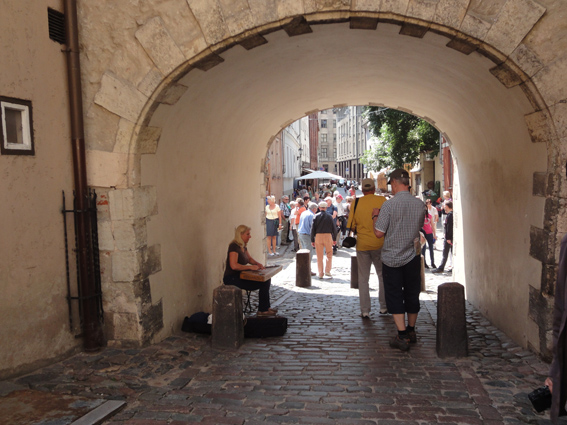 6月29日午後、リトアニアから国境を越えてラトヴィアに入国して間もなく、「バルトのヴェルサイユ」と称されるルンダーレ宮殿(写真1)に到着した。幸運にも、当日はイベントの開催日で、中世の貴族の衣装を気飾った紳士淑女を撮影する機会に恵まれた。(写真2 )内部の広間は豪華であり、窓からは素晴らしい庭園が目を楽しませてくれる。すっかり好い気分になって、一時間半バスに乗って、ラトヴィアの首都リガに到着した。