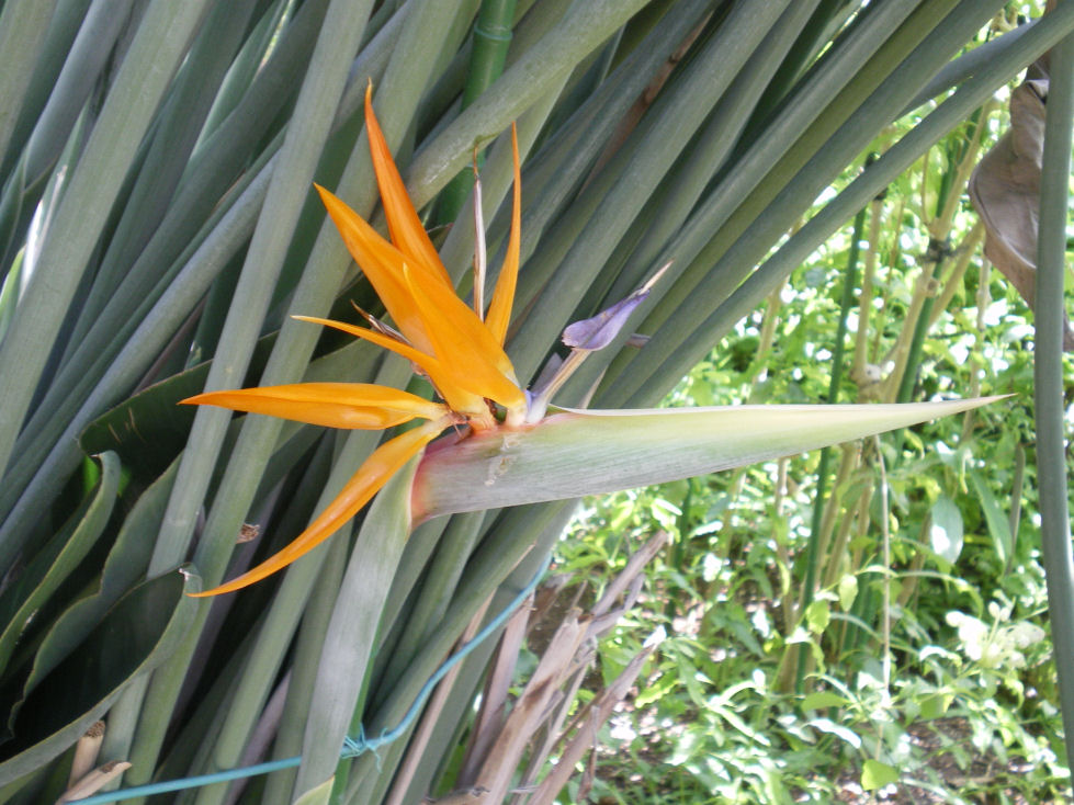 極楽鳥は”風鳥(ふうちょう)“という鳥の別名で、金色の美しい飾り羽を尾の部分に持つ。この鳥に似ている花ということで、「極楽鳥花」と命名された。