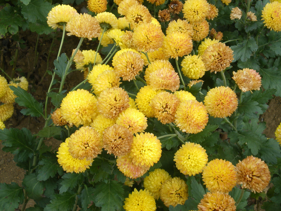 スプレーとは、英語の「spray」で(花や葉をつけた小枝)の意。1本の小枝に5~7輪の花を咲かせるキクのことをスプレーギクというそうです。花色、花形は多種多様だそうです。(ファンシャイン)も(ゴールデンピース)も多種多様の中の1例のようです。黄色の菊の花言葉は、「やぶれた恋」だそうです。