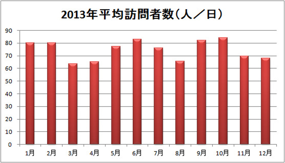 昨年1年間の平均訪問者数を月別に集計すると下のグラフのようになります。(グラフをクリックすると拡大表示されます)