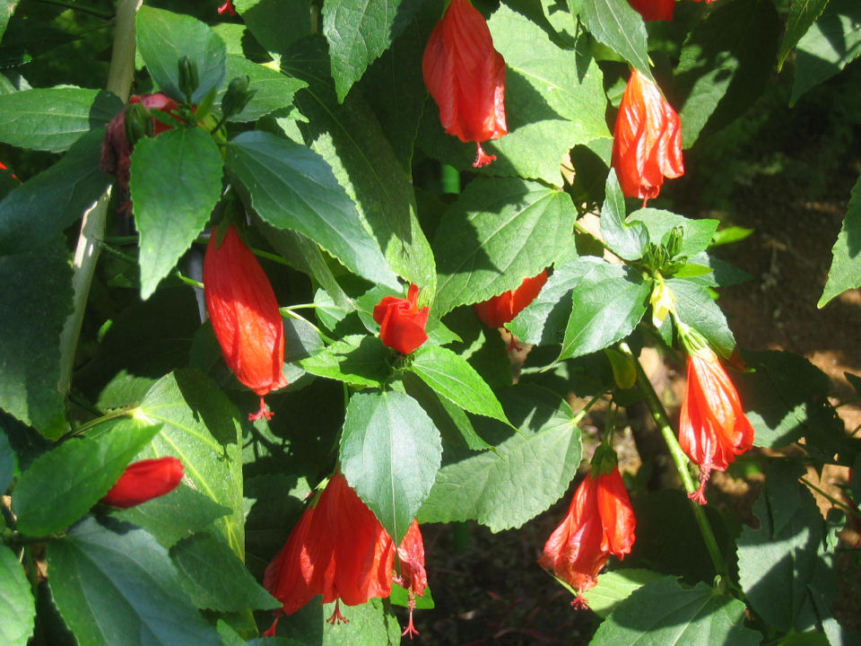 原産地は、メキシコ、コロンビア。日本本州では温室内でしか見られないが、沖縄では自生しているらしい。蕾の時は上を向いているが、次第に下を向き花は開ききらずにうつむいて咲く。英名は(sleeping hibisicus)だそうです。