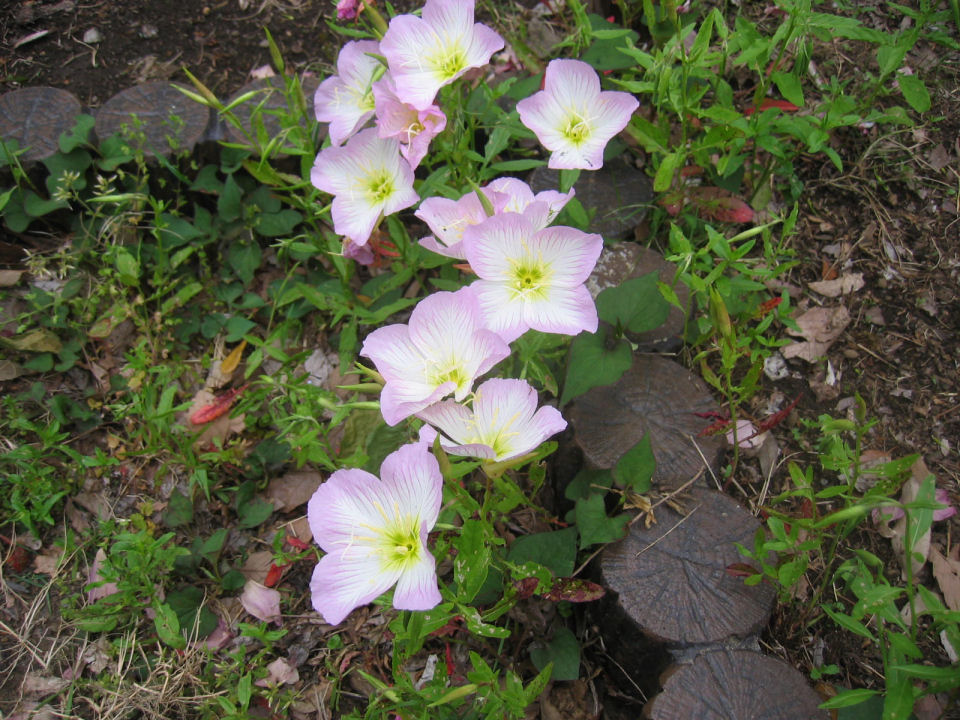 原産地は北米、花言葉は「自由な心」。名前の由来:ツキミソウが昼間しぼむのに対して、昼間に開花し、桃色をしているからだそうです。