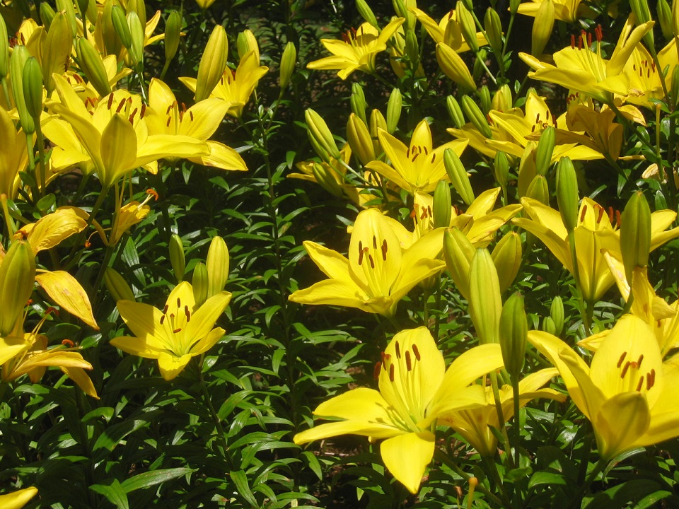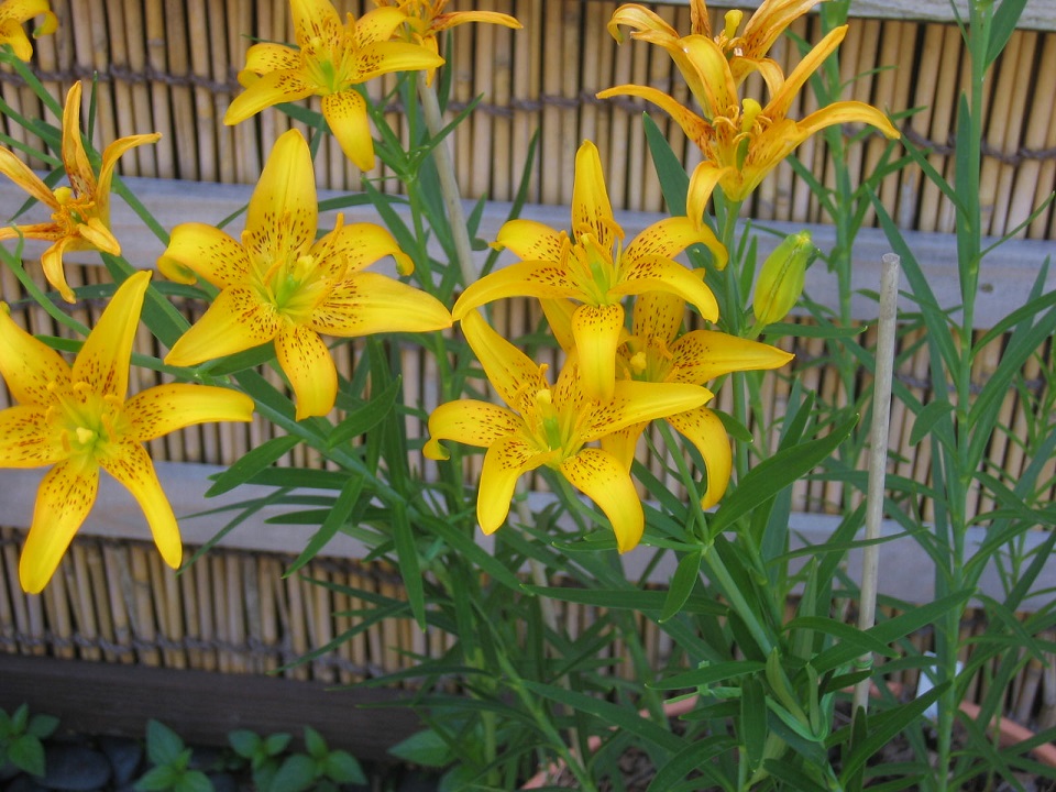 直径5cm強の、小さな百合。姫百合の黄花タイプ。標準的な野生種の姫百合は鮮やかなオレンジ色~スカーレット色の花です。